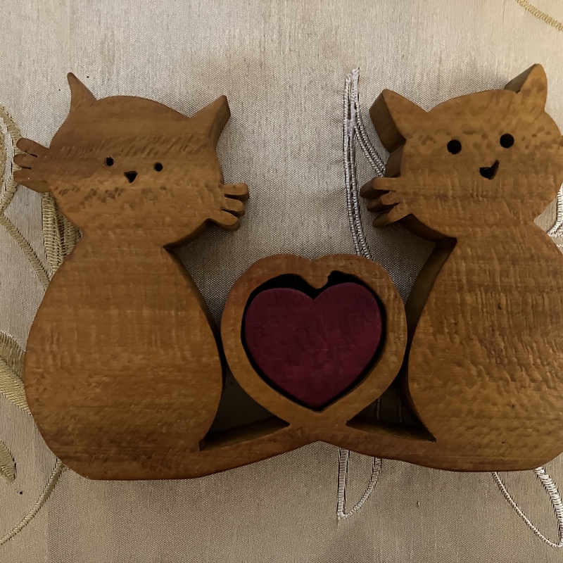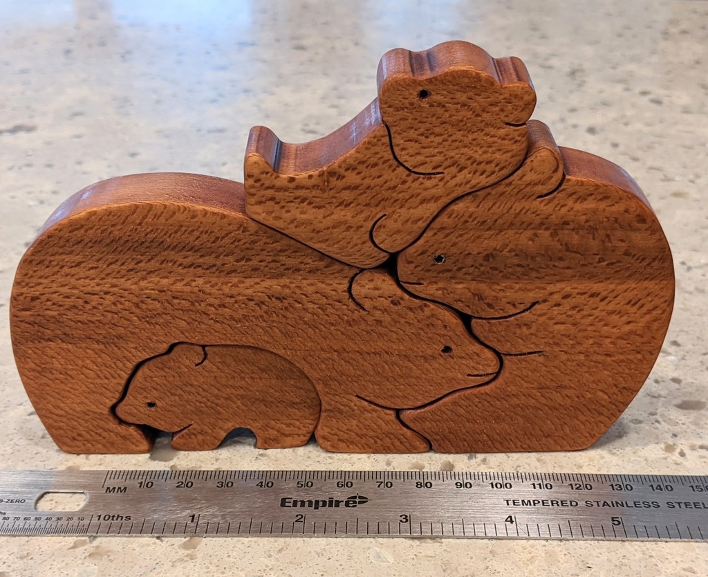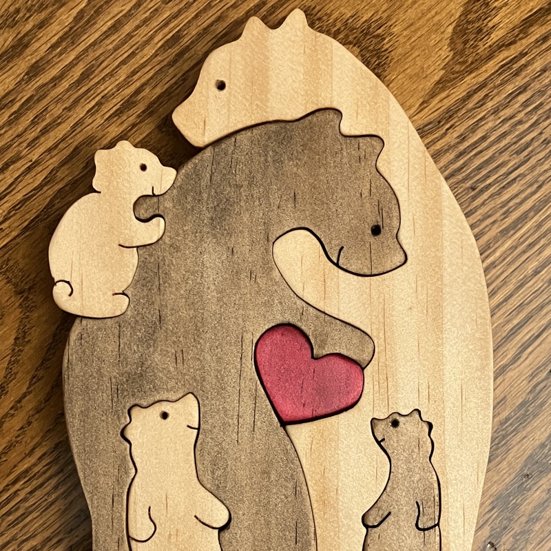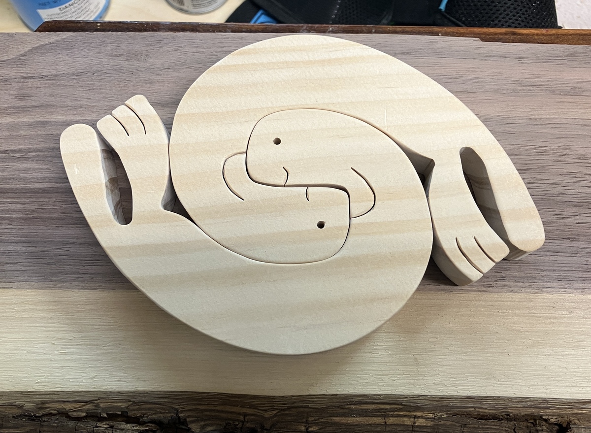 On the puzzles and other non-food-related things I use boiled linseed oil. It's a nice non-toxic finish with a soft sheen. These items don't need any care. If you've played with them so much as to wear off the finish, you can use most any oil (I recommend mineral oil, available inexpensively in drug stores), but if you want to be fancy, use the boiled linseed oil like I do; it has more durability than plain oil.
