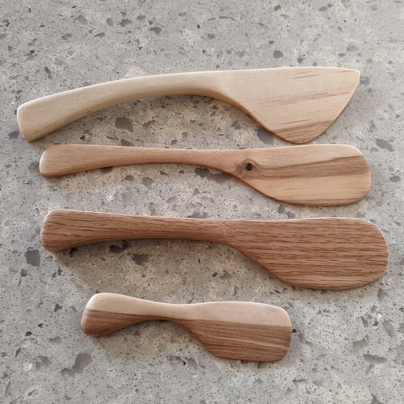 For the spoons and spreaders, I finish them with a mix of mineral oil and beeswax.