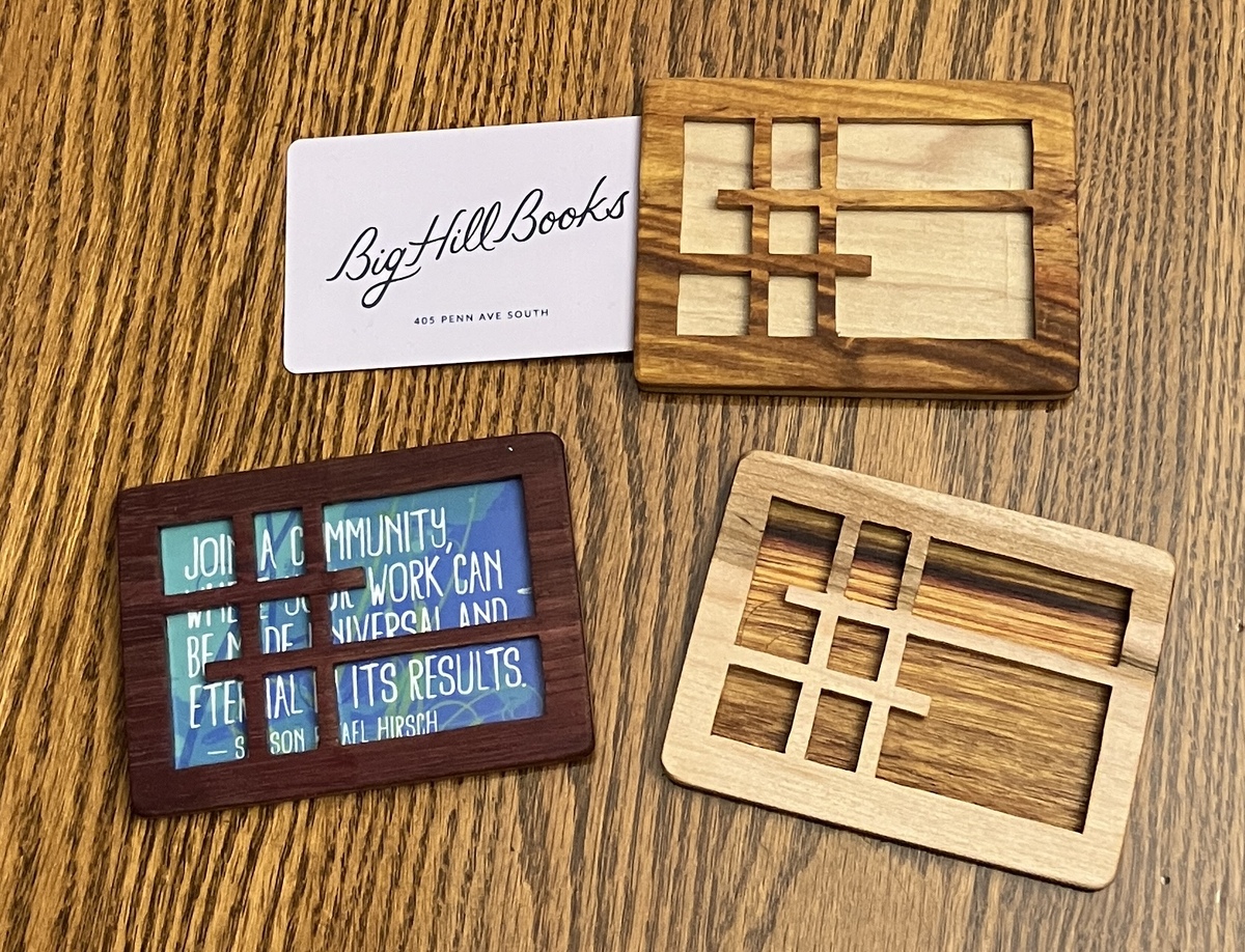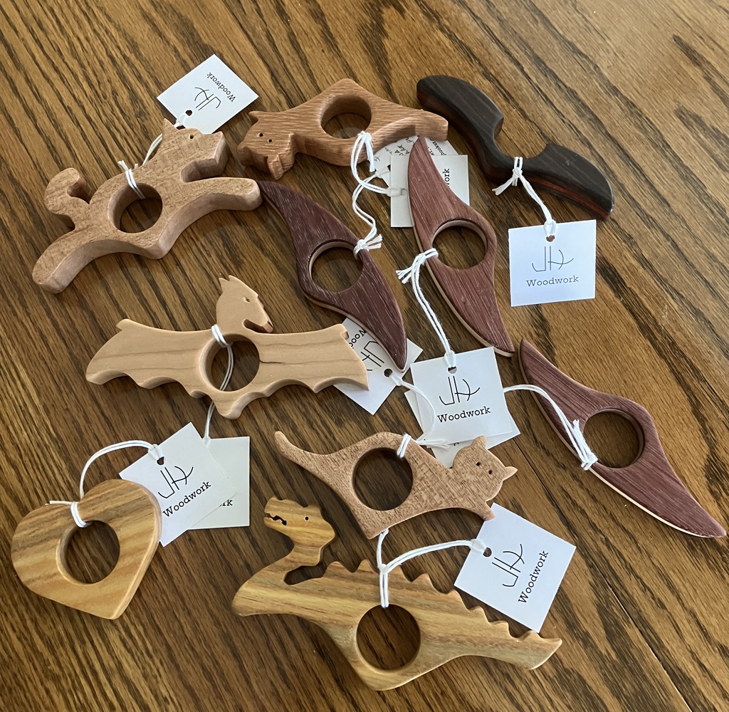The items of mine that sell the most at the wonderful Big Hill Books in the Bryn Mawr neighborhood of Minneapolis, are a funny little thing: a device solving a problem no one has, which is how to hold your book open with your thumb! I call them Thumbelinastm and they are just as cute as can be.