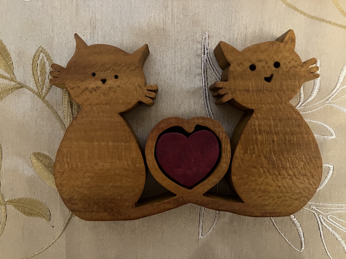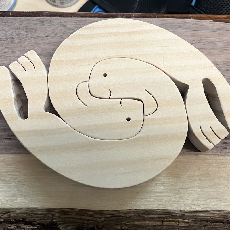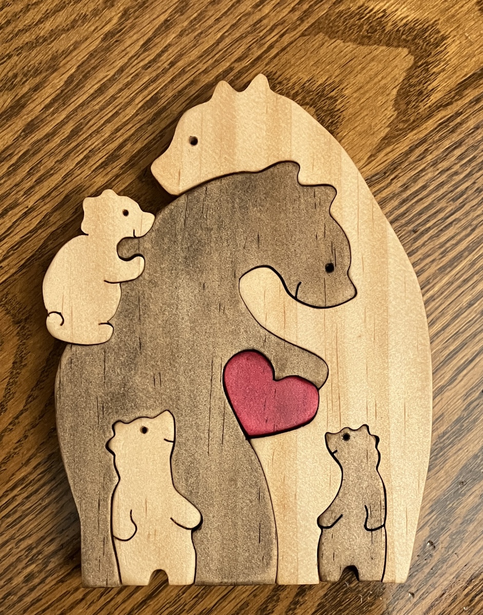 On the puzzles and other non-food-related things I use boiled linseed oil. It's a nice non-toxic finish with a soft sheen. These items don't need any care. If you've played with them so much as to wear off the finish, you can use most any oil (I recommend mineral oil, available inexpensively in drug stores), but if you want to be fancy, use the boiled linseed oil like I do; it has more durability than plain oil.